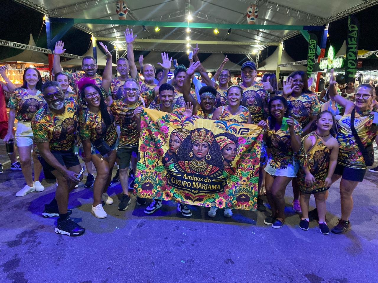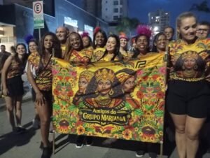 O “Amigos do Grupo Mariama” contou com apoios fundamentais para garantir uma festa de qualidade. O bloco foi contemplado com recursos do edital da Fundação Cultural de Itajaí, reconhecendo a importância social e cultural do grupo para a comunidade. O Restaurante Schroeder entrou na folia patrocinando prêmios especiais para os foliões destaque — uma forma animada de valorizar quem mais se entregou à festa. Já a empresa HSO Logística garantiu o conforto dos integrantes ao patrocinar os leques e as águas distribuídos durante os desfiles, um cuidado essencial nas quentes noites de carnaval.